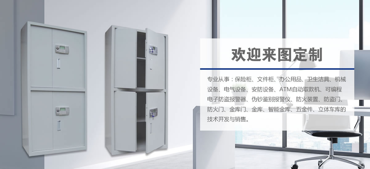 ? 專業(yè)從事:保險柜、文件柜、辦公用品、衛(wèi)生潔具、機械設備、電氣設備、安防設備、ATM自動取款機、可編程電子防盜報警器、偽鈔鑒別報警儀、防火裝置、防盜門、防火門、金庫門、金庫、智能金庫、五金件、立體車庫的技術開發(fā)與銷售